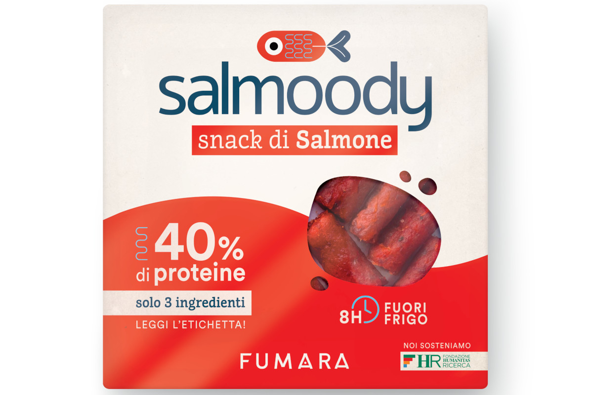 Prima non c’era e adesso c’è. Metà salmone e metà snack, un prodotto davvero innovativo nato da un’intuizione gourmand di Gianpaolo Ghilardotti lo chef imprenditore alla guida di Foodlab, azienda tutta italiana (ha sede nel cuore della Food Valley parmense) che, con il suo brand Fumara, da oltre vent’anni è specializzata nella lavorazione e nell’affumicatura di salmone proveniente dai freddi mari del Nord e di altre tipologie di pesce.
