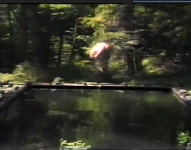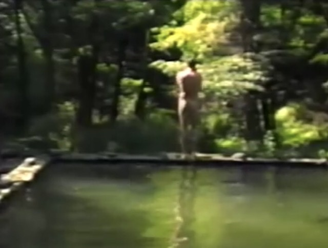 La sua immagine rimane bloccata: mentre per lui il tempo si arresta, la superficie dell’acqua registra piccoli eventi e il suo corpo gradualmente scompare. Per riapparire in mezzo alla vasca, nudo, ed uscire dalla piscina per allontanarsi nel bosco da cui era venuto.