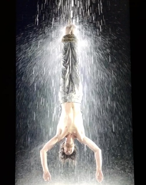 Ascension (2000) ci mostra la rallentata e coinvolgente sensazione di un corpo che si immerge in una grande quantità di acqua. La figura umana raggiunge le profondità subacquee in cui il corpo umano si fonde nella grandezza infinita dell’universo. Acqua come simbolo di caduta ma anche rinascita, purificazione e morte. La sala è buia, la sensazione che proviamo è quindi amplificata e anche noi ci sentiamo immersi in una dimensione nuova, rigenerante e purificatrice che solo l’acqua può darci.