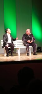 Durante lo spettacolo è affiancato dal bravo Pierre Bresolin interpretando la divertente scenetta comica dell’idraulico ricca di sottintesi ed equivoci.