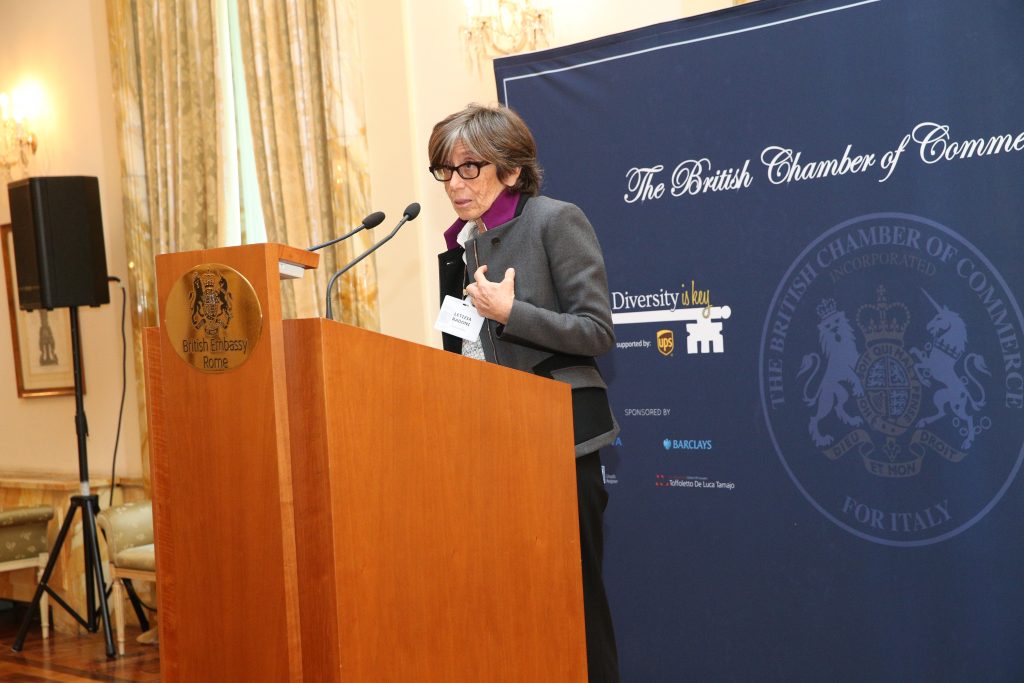 Nel suo intervent Jill Morris, Ambasciatore del Regno Unito in Italia ha dichiarato:.“Accolgo con grande piacere l’iniziativa Diversity is Key, promossa dalla Camera di Commercio Britannica per l’Italia e da UPS. Il Foreign Office britannico tutela e promuove la cultura della diversità e io sono orgogliosa di far parte di un corpo diplomatico formato da persone di ogni genere, età, etnia, religione ed orientamento sessuale. Attualmente il personale del Foreign Office è al 43.2% femminile e da marzo 2016 abbiamo 50 ambasciatori donne in tutto il mondo, di cui tre solo a Roma. Maggiore diversità all’interno della forza lavoro costituisce una ricchezza per ogni organizzazione e ci permette, nel nostro caso, di rappresentare al meglio il nostro paese, in tutte le sue sfumature”,