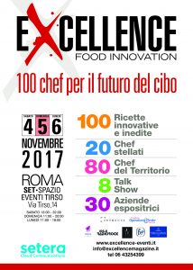 Dal 4 al 6 novembre – negli spazi di SET, in via Tirso 14, Roma, zona Parioli – “Excellence 2017 // Food Innovation” promette infatti 3 intensi giorni dedicati a Produttori, Imprenditori, Chef, Esperti del settore ed Artisti che insieme concorreranno a creare un’atmosfera di interscambio culturale unica ed a definire i contorni di una vera e propria Food Business Community.