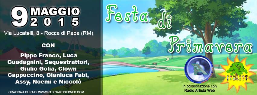 Un grande evento si terrà il 9 Maggio a Rocca Di Papa dove dove saranno presenti numerosi artisti tra cui Pippo Franco,Giulio Golia, Luca Guadagnini & Band, Gianluca Fabi,i Sequestrattori da Zelig, il Clown Cappuccino, Il M° Stefano Coratella.