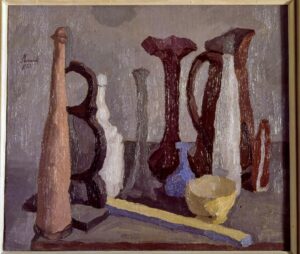 La sezione VERSO LA NUOVA GALLERIA D’ARTE MODERNA. UNA COLLEZIONE IN CONTINUA CRESCITA all’ultimo piano si focalizza sul trasferimento della raccolta dal Museo di Roma al Palazzo delle Esposizioni con la “Mostra di una selezione di opere” del 1963 curata ancora una volta da Carlo Pietrangeli e terminata nel 1972, quando le opere tornano nei depositi. E ancora una volta le acquisizioni di questi anni – che non si arrestano neppure di fronte alle incertezze nel trovare nuove sedi museali – riflettono una eterogeneità nella scelta delle opere, con uno sguardo al passato e uno alle più recenti novità artistiche (esposti, tra gli altri, Pompeo Fabri, Vittorio Grassi, Giuseppe Capogrossi, Giulio Turcato, Alberto Savinio, Antonietta Raphaël Mafai, Fausto Pirandello).
