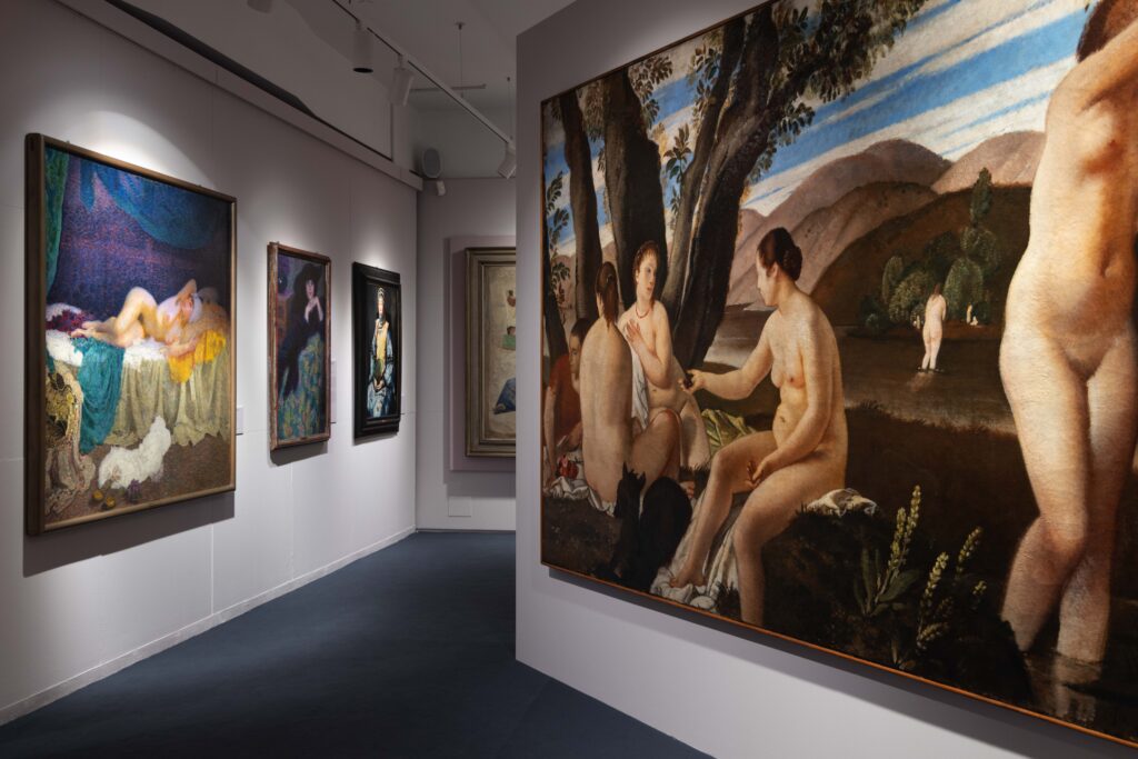 Ma sono soprattutto le mostre della Secessione romana nel secondo decennio del Novecento a trasmettere l’idea di un’attenzione precipua per ciò che è contemporaneo nonché la sensibilità nei confronti di quei linguaggi artistici talvolta in contrapposizione ma che per l’amministrazione capitolina sono il frutto di un rinnovamento da cui non ci si può sottrarre. “Secessioniste” sono dunque le opere di Vittorio Grassi (I civettari), Enrico Lionne (Violette), Camillo Innocenti (La sultana) ma anche di Auguste Rodin, uno dei pochi artisti stranieri presenti in collezione. Dall’altro lato la purezza, il “ritorno all’ordine”, gli ideali propugnati dalla rivista Valori plastici e dal movimento Novecento di Margherita Sarfatti, con l’obiettivo di porsi in alternativa alla dilagante esuberanza delle avanguardie in nome di un ritrovato e rinnovato classicismo che chiama a raccolta artisti quali Felice Carena con l’opera Serenità, Mario Sironi con La famiglia o ancora Gino Severini il quale – alla stregua di altri artisti tra cui Achille Funi e Maria Immacolata Zaffuto – si cimenta nel recupero dei saperi tecnici dell’antica Roma come, ad esempio, il mosaico nella sua Composizione.