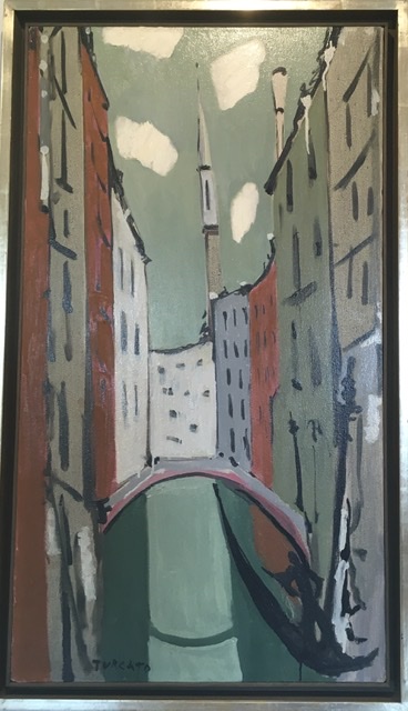 Seguono le vedute veneziane degli anni ’40, reminiscenze del suo periodo giovanile nella città lagunare e dominate ancora da elementi figurativi in cui il colore cerca però di travalicare i contorni delle forme.