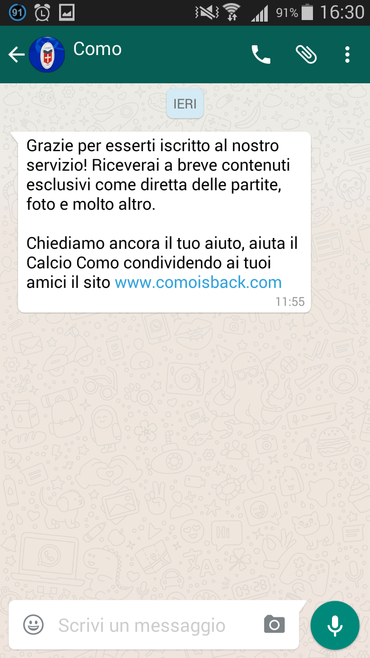 Essendo una novità Whatsapp nel mondo del calcio, ho effettuato una piccola ricerca per capire in che modo il Como avrebbe informato i suoi tifosi con i risultati delle partite e contenuti esclusivi.