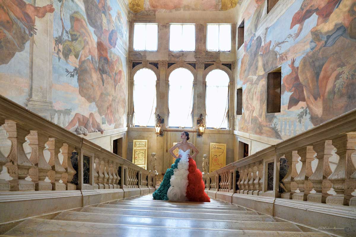 Un video girato nella città di Venezia, a Palazzo Ducale, rappresenta le sue suggestive creazioni, ad esempio un vestito di pizzo totalmente bagnato nell’oro, che riprende il colore di Cà Sagredo a Venezia.