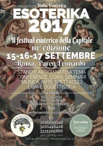 Il Progetto “Italia Esoterica”torna con la decima Edizione della Fiera Esoterika 2017 in una location perfetta e molto ricettiva : il Parco Leonardo di Roma. Saranno presenti oltre 1 centinaio tra i Aziende ed espositori con oggetti a tema e/o legati al Benessere e si prevede un’affluenza di circa 10.000 visitatori in questa full -immersion di 3 gg di Conferenze che trattano gli argomenti più interessanti ed affascinanti legati ai Misteri di ogni genere ed all’ Esoterismo – di cui potranno usufruire tutti in modo totalmente gratuito, così da favorire sia il pubblico curioso che gli ospiti competenti che vorranno venirci a trovare – come afferma l’esperto ideatore e fondatore di questa originalissima Fiera , Riccardo Cecchini .