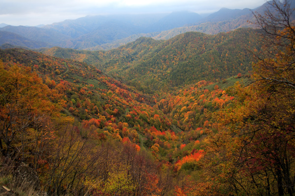 Il parco della Sila, il più esteso altopiano d’Europa nel cuore della Calabria, si trasforma con i suoi faggi in una macchia colorata con le tonalità più accese di arancio, rosso e giallo.