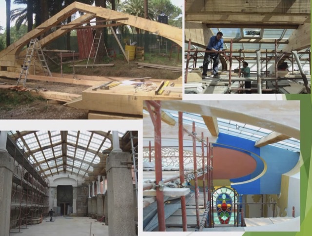e si è provveduto alla ricostruzione di tutte le parti mancanti rifacendosi agli originali superstiti e ai disegni dell’epoca. Le vetrate sono state ricostruite da una ditta romana attingendo ai