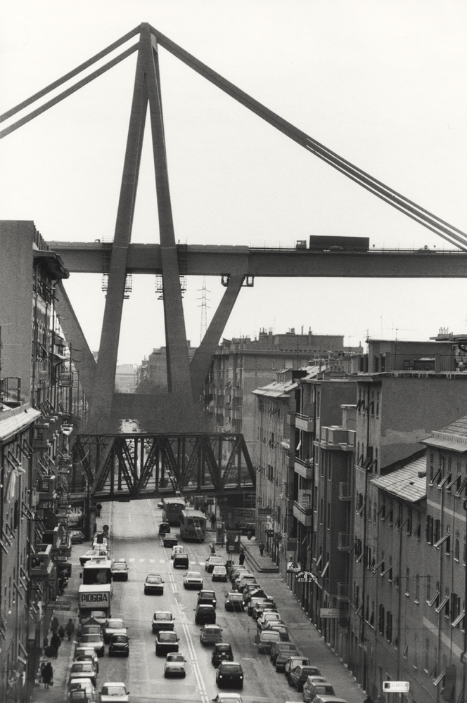 Genova, 2001 , il ponte sopra la città e la ferrovia, 2002 di Gianni Berengo Gardin.