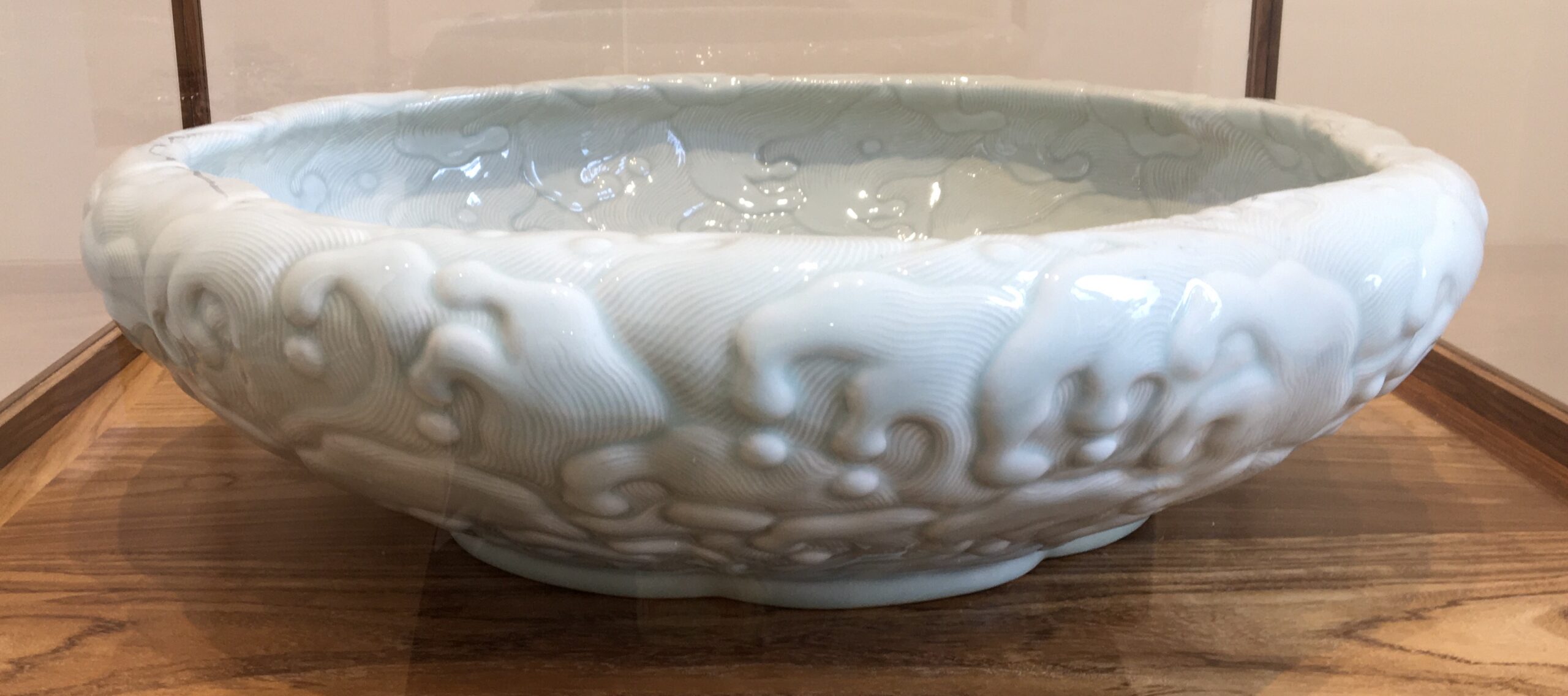 Il motivo dell’onda che si sviluppa fino a culminare in un vortice è un omaggio all’arte della dinastia Yuan (1271- 1368), in cui l’acqua era un tema ricorrente.