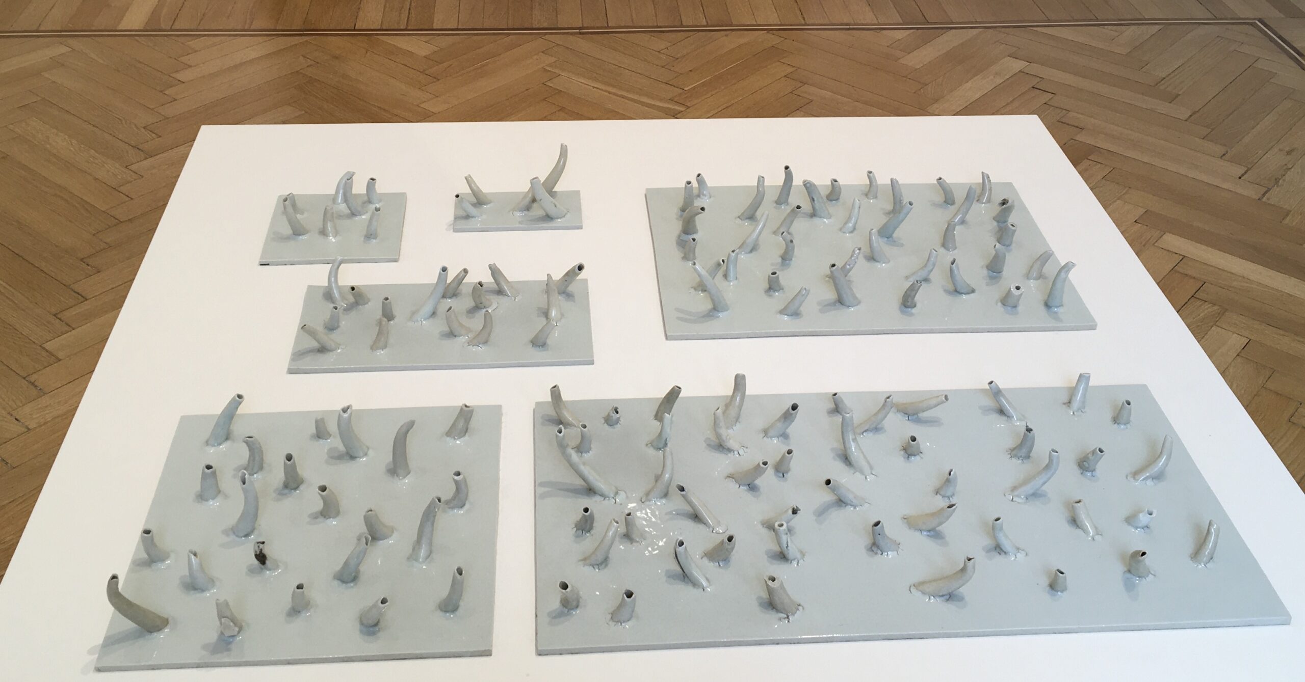 Set of Spouts è una scultura in porcellana realizzata con beccucci di teiere rotte. È un riferimento alla cultura del tè in Cina ma anche agli abusi dei diritti degli individui. La frase “Prendiamo un tè” è spesso un eufemismo con cui i gendarmi dell’ordine cinese invitano ad un primo interrogatorio. SPOUT sinifica anche “sputare” ed evoca la storia del nostro artista che è considerato un ribelle oppositore, “uno che sputa opinioni inaccettabili” .