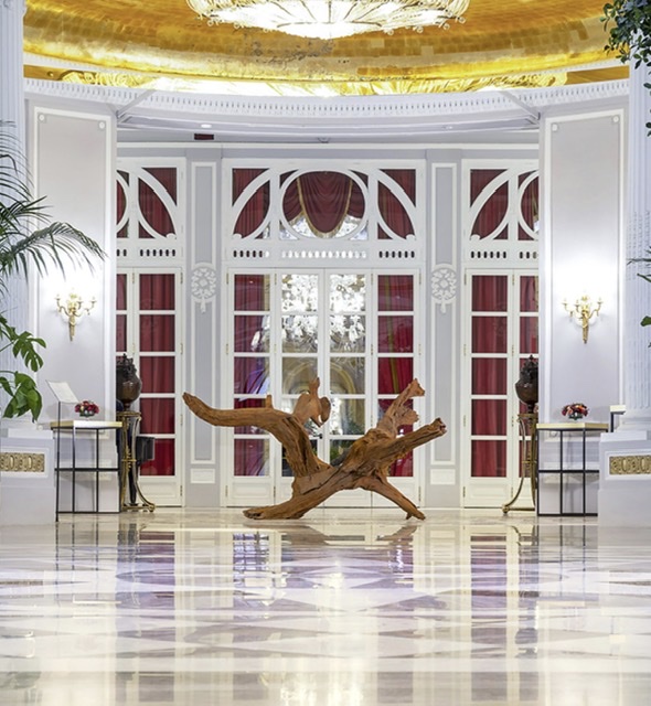Il percorso espositivo si conclude nella hall dell’albergo con l’opera Palace, frutto della collaborazione dell’artista e alcune comunità brasiliane. Individuate le radici e i tronchi di un albero in via di estinzione, il Pequi Vinagreiro, questi elementi sono stati modellati per creare sculture dalle forme inusuali. Tra i marmi e i cristalli della luminosa hall dell’hotel, Palace ci disorienta e ci incanta, creatura selvaggia eppura domata, carica di magia.
