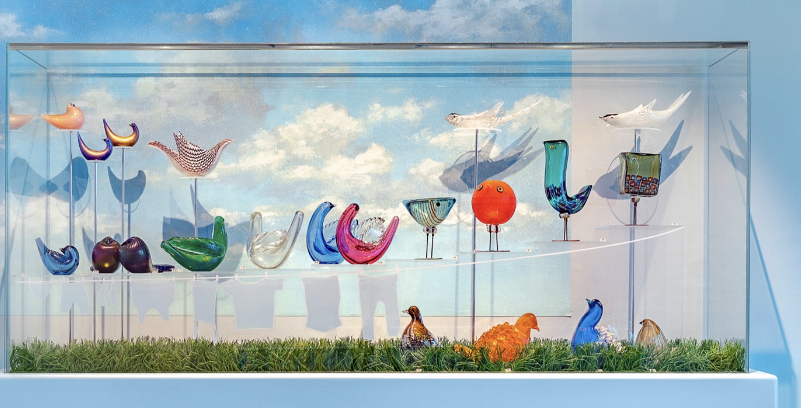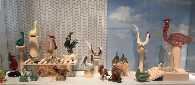 Il collezionare animali in vetro ha permesso a Rosenberg di frequentare le vetrerie di Murano e i maestri vetrai che secondo lui sono veri artisti che mostrano di possedere un grande spirito di osservazione rappresentando gli animali in modo curioso e non convenzionale. I migliori artisti del vetro sono tutti in mostra: Napoleone Martinuzzi con i suoi Pelugosi (tecnica in cui il vetro si presenta pieno di bollicine ottenute introducendo nella massa fusa una sostanza per produrre lo sviluppo di bolle di gas. La tecnica venne sviluppata da Martinuzzi stesso per la Venini),Tyra Lundgren e Toni Zuccheri con I Volatili, Bruno Amadi con i suoi Insetti a lume di vetro (tecnica nella quale si utilizza la fiamma di un cannello metallico per fondere il vetro formato in bacchette. All’inizio la fiamma era prodotta da un lume, da cui deriva la denominazione), Barovier & Toso con gli Zebrati e Alfredo Barbini con i suoi Acquari.