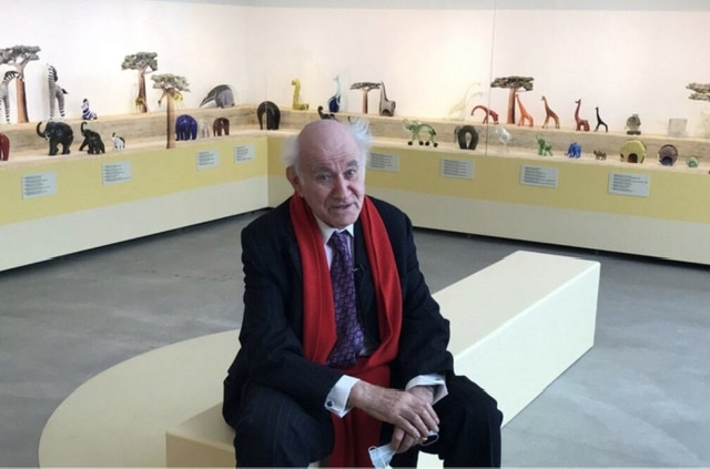 Pierre Max Rosenberg (Parigi, 13 aprile 1936), è un famoso storico dell’arte francese e membro dell’Académie française. Specialista della pittura e del disegno del XVII e XVIII secolo francesi ed italiani, è stato direttore del Museo del Louvre di Parigi. Molteplici le sue pubblicazioni. Per ragioni personali ha passato molto tempo a Venezia negli ultimi trent’anni e ha cominciato a collezionare il suo zoo di vetro quasi per caso. In realtà, come lui stesso ha dichiarato in una recente intervista, gli sembrava strano essere a Venezia senza aver nulla da fare e tutto è iniziato nel ristorante di Venezia Il Covo.