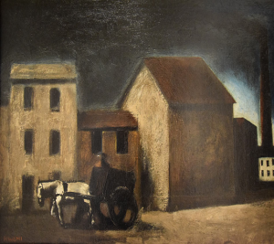 Un progetto sicuramente impegnativo che presenta in un’ottica nuova, attraverso un accurato utilizzo delle fonti, l’intreccio di creatività e vicende politico/esistenziali di Sironi. Tracciando l’itinerario cronologico della sua ricerca. La retrospettiva si connota inoltre per l’attenzione rivolta al paesaggio urbano di Milano, lavori risalenti agli anni Venti del ‘900. I toni lividi, disumanizzati delle sue periferie. Hanno un taglio spaziale contratto. Quasi troncato, monco. Dove sembra mancare l’aria. Dove non si è liberi. Come se il rappresentato fosse rinchiuso in una gabbia. Il verde è assente. I colori cupi. Ma la solidità del disegno trasfigura le periferie. Le rende austere. Non prive di una certa grandiosità.