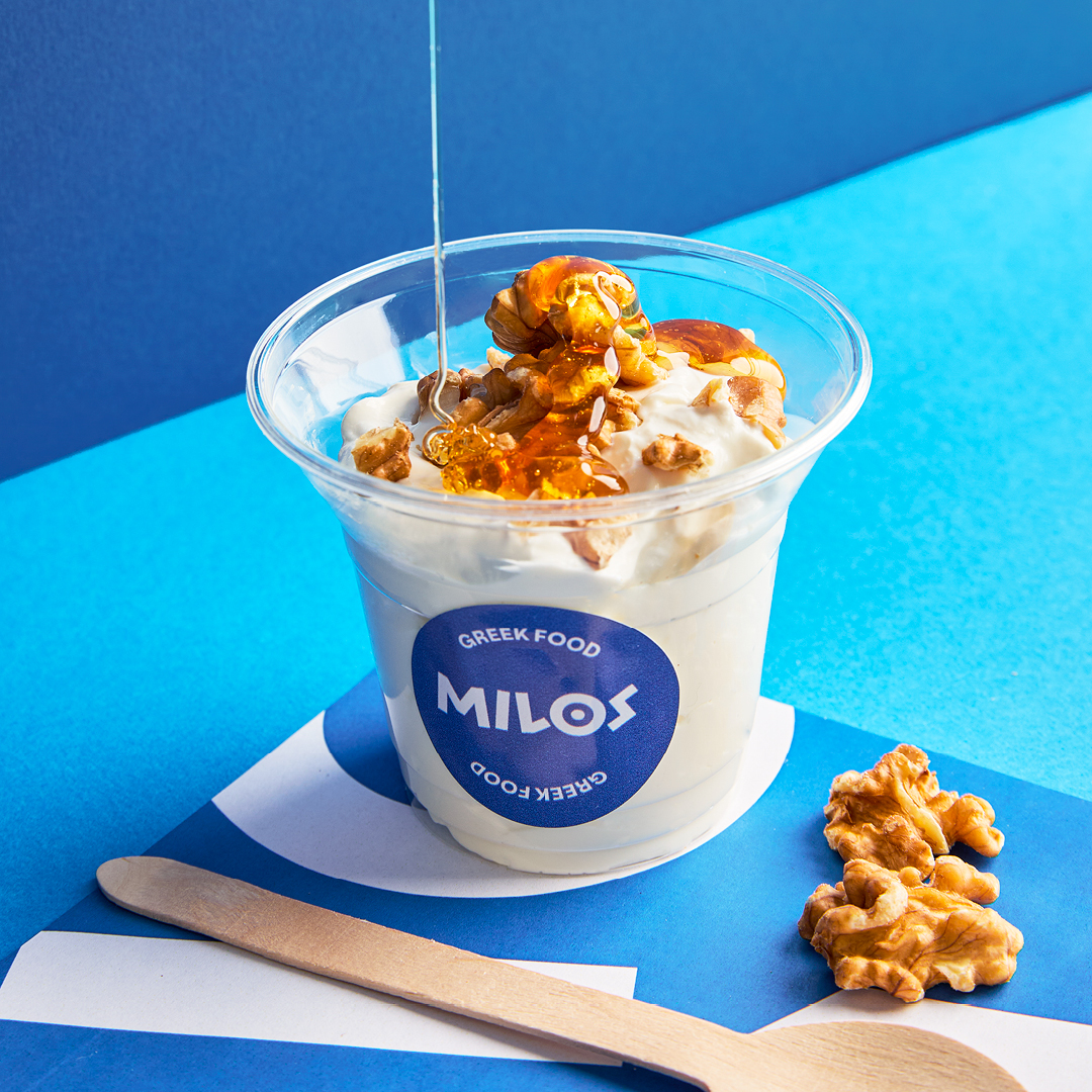 Milos Greek Food unisce il formato dinamico del fast food all’autenticità della cucina greca: gyros pita, souvlaki, insalate greche, tzatziki, dolmades, moussaka express, dolci tipici come yogurt con miele e noci e la mini-pita alla Nutella. Tutto viene realizzato con ingredienti originali importati dalla Grecia, come feta DOP, olio extravergine d’oliva e spezie mediterranee.