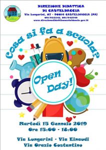 La Direzione Didattica di Casteldaccia martedì 15 gennaio 2019 promuoverà la giornata dell’Open Day, avviando molteplici attività laboratoriali che vedranno impegnata una buona parte dei bambini della scuola dell’infanzia e della scuola primaria, dalle ore 15.00 alle ore 18.00.