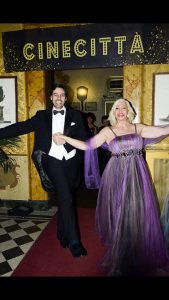 Dopo l’ingresso trionfale della buonissima e splendida torta decorata con la storica immagine di Anita Ekberg nella Fontana di Trevi, realizzata da Donato Perrone, sul meraviglioso set cinematografico con le riprese di Raffaello Saragò e Andrea Leonetti Di Vagno, ha preso vita uno spettacolo strabiliante con gli ospiti in maschera che hanno dato prova del loro talento esibendosi in brani tratti dai musical a cui si erano spirati. Così si sono alternati momenti di Moulin Rouge, Darling queen, Polvere di stelle, La febbre del sabato sera, Rossella O’Hara, Wanda Osiris, Il fantasma dell’opera, Cabaret di Liza Minnelli, Mary Poppin’s, Jesus Christ Superstar… compresi Ginger Roger e Fred Astaire interpretati da Sara Iannone, in abito realizzato da Luigi Bruno, e dal barone Fabrizio Mechi.