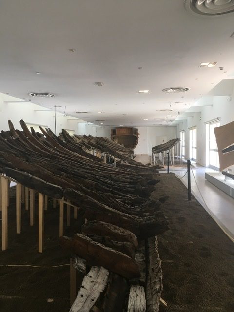 Il percorso di visita si sviluppa su due piani e al piano terreno, nelle sale più grandi, è ubicata l’imponente esposizione di parte dei relitti di 24 navi romane ritrovate nel 1999 nello scavo del tunnel cittadino proprio a poche centinaia di metri dal Museo. Questi straordinari ritrovamenti hanno imposto un radicale cambiamento al percorso museale, riservando queste ampie sale all’esposizione dei relitti e destinando le sale del primo piano alla storia della città e del territorio.