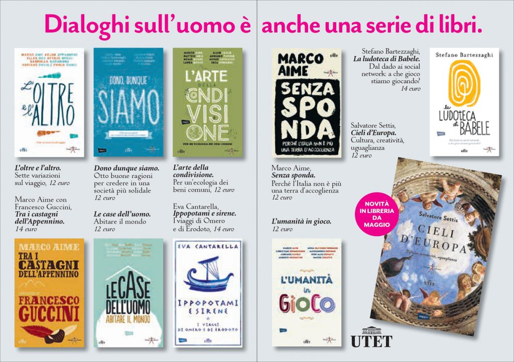 Per continuare il percorso iniziato durante il festival e fornire nuovi strumenti di riflessione in tutte le librerie italiane c’è la serie di libri Dialoghi sull’uomo, diretta da Giulia Cogoli, promossa dalla Fondazione Cassa di Risparmio di Pistoia e Pescia e pubblicata da Utet.