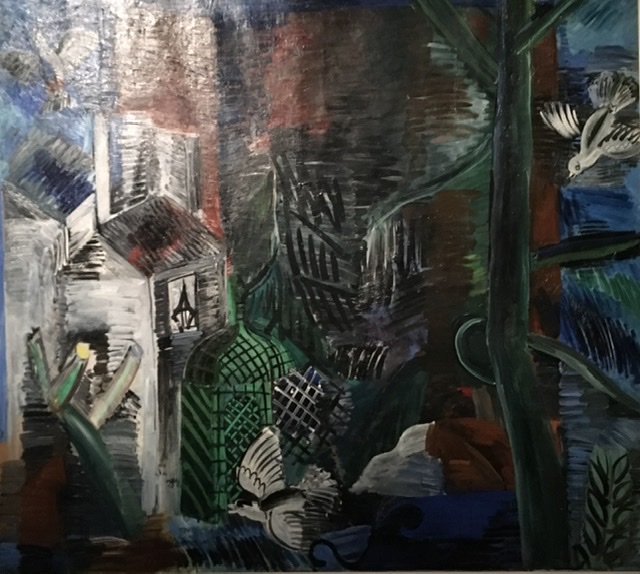 Successivamente Dufy si avvicina alla pittura del grande Paul Cézanne, “il padre di tutti noi” come diceva Pablo Picasso. Le forme assumono connotazioni e volumi geometrici. Ne Il giardino abbandonato del 1913, l’allontanamento dalla realtà è palese, le dimensioni degli oggetti sproporzionate. Il suo interesse è concentrato su linee e volumi e la loro interazione.