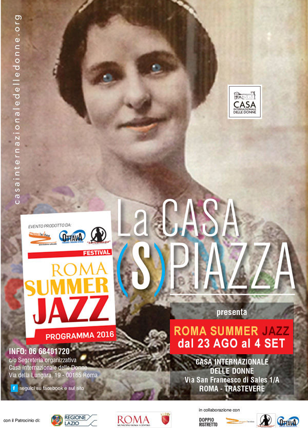 La Casa Internazionale delle Donne apre le porte al jazz, ospitando dal 23 agosto al 4 settembre, all’interno della sua iniziativa estiva “La Casa(S)piazza”, il Roma Summer Jazz Festival. Ospiti del cortile seicentesco dello storico complesso monumentale nel cuore di Trastevere, gli artisti internazionali in calendario presenteranno per l’occasione progetti originali e con una particolare attenzione al femminile. All’interno del complesso, l’area ristoro “Luna e L’altra” è aperta tutti i giorni fino alle 23:00.