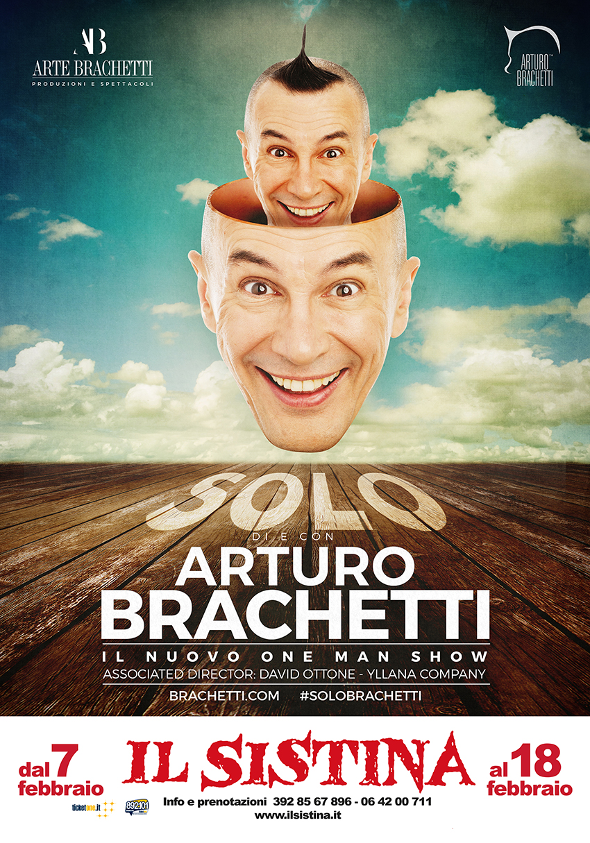 Dopo il debutto internazionale a Parigi, da mercoledì 7 a domenica 18 febbraio, arriva al Teatro Sistina il nuovo atteso One Man Show di Arturo Brachetti: “SOLO – the Master of quick change”. Un vero e proprio assolo del grande artista che torna sui palcoscenici come unico protagonista dopo il trionfo dei suoi spettacoli applauditi da milioni di spettatori in tutto il mondo.