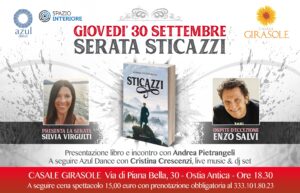 30 settembre alle ore 18.30 nella splendida cornice del Casale Girasole di Ostia Antica verrà presentato il libro Sticazzi – La suprema via della leggerezza di Andrea Pietrangeli.