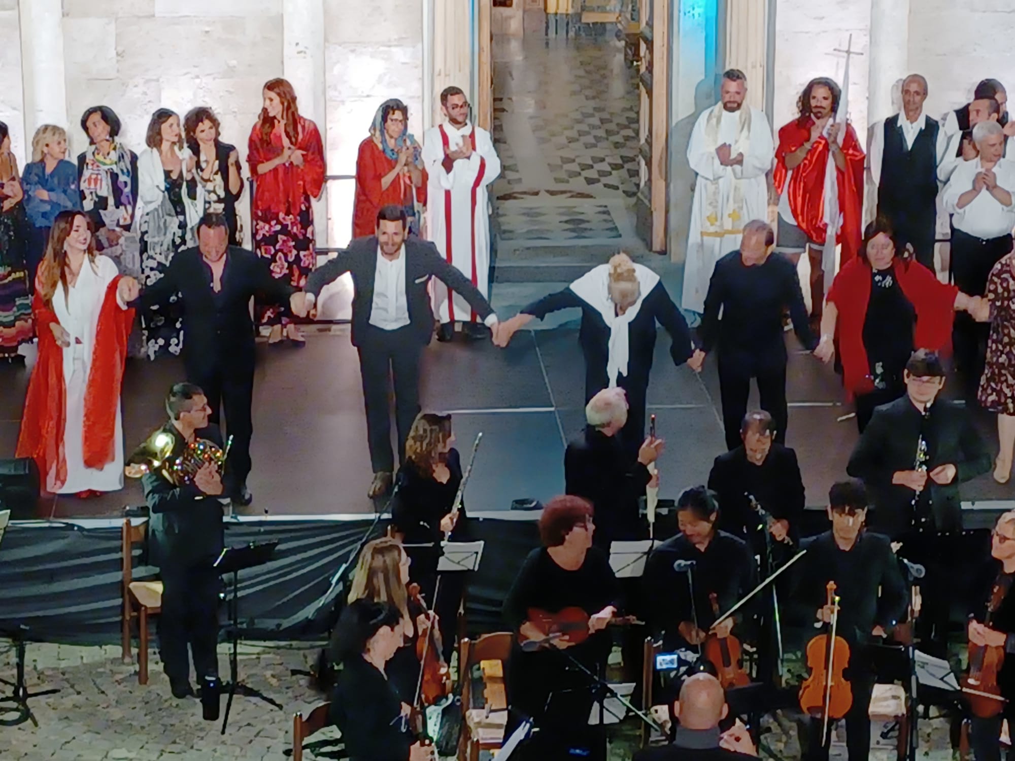 Il momento clou è stato il preludio in cui i ballerini diretti da Minea De Mattia hanno aperto ai protagonisti Turiddu. Altro momento di grande impatto la processione con Gesù Cristo durante il Regina Cieli.