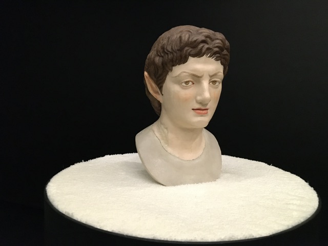 Seguono 6 busti in gesso dipinti con acquerelli di Vezzoli: Portrait of Antinoo as a rock star del 2023.