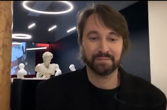 Vezzoli ci mostra il suo Achille del 2021, un busto in marmo del XIX sec. dipinto con pittura acrilica.