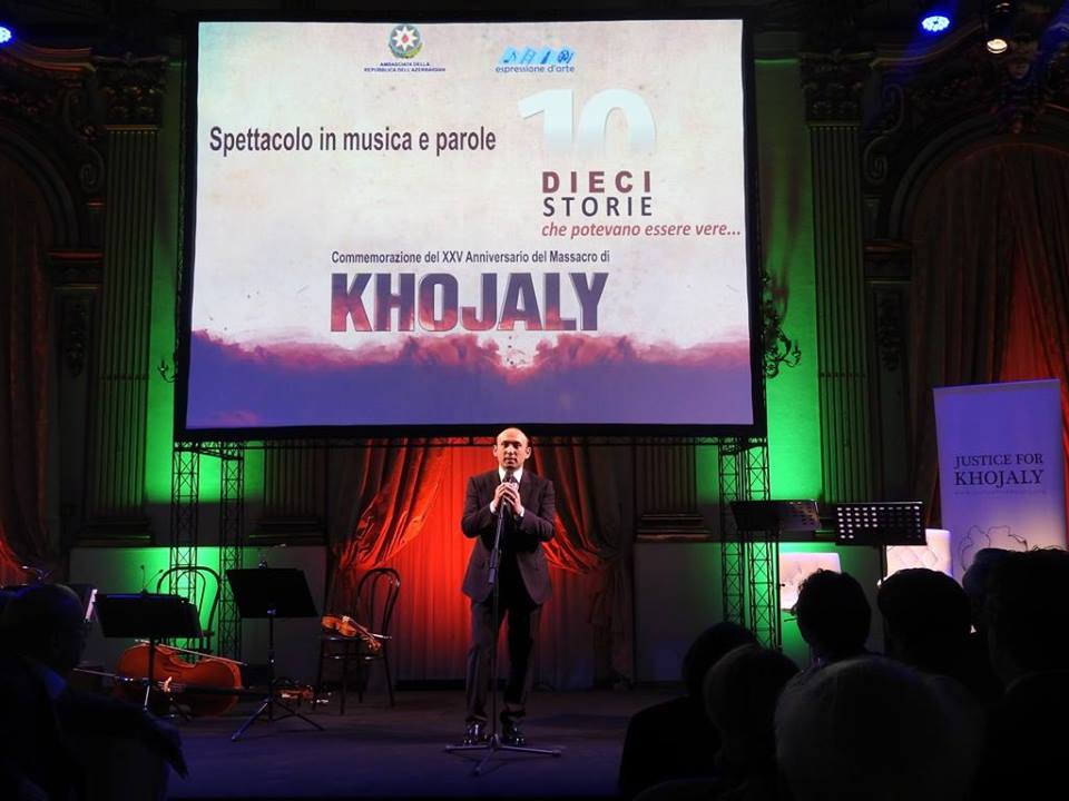 In commemorazione del XXV anniversario del genocidio di Khojaly, è stato rappresentato a Roma lo spettacolo in musica e parole  “Dieci storie che potevano essere vere…”