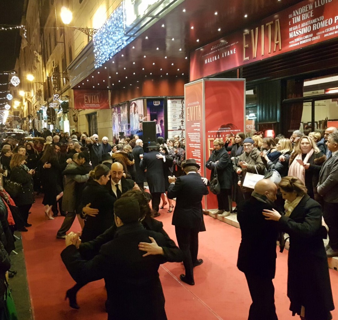 Hanno invaso la strada danzando un elegante tango su un lungo tappeto rosso, tra gli sguardi sorpresi e gli applausi...