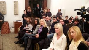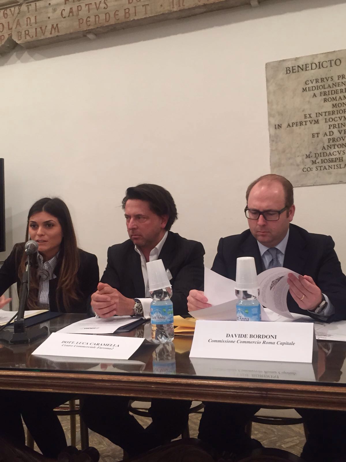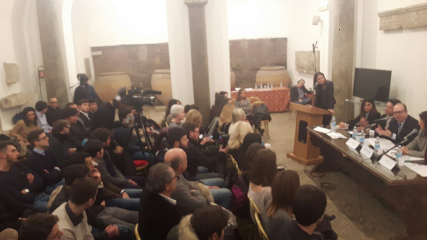Sala Del Carroccio gremita in Campidoglio, per la Conferenza Stampa di presentazione del Premio Commercio Roma. Durante l’incontro sono intervenuti: la Dott.ssa CristinaAllegra del Mediocredito Centro Italia, il Dott. Luca Caramella di Euroma2, la Vicepresidedell’Istituto Tecnico Costruzioni Ambiente e Territorio “G. Valadier”, dell’ “IIS Salvini”, Natalia Barbato, il coordinatore Grandi Città di Roma CapitaleDavide Barbato e il vincitore della precedente edizione Denis Paul. Presenti anchenumerosi esponenti della rappresentanza politica territoriale, ma anche studenti, presidi e professori.