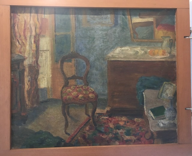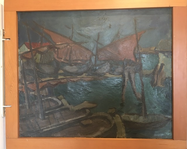 Il percorso espositivo delle 30 tele al Castello di Santa Severa riflette la ricerca artistica e l’esperienza di vita dell’artista stesso. Il primo dipinto che incontriamo è in realtà un quadro inedito bifronte realizzato tra il 1928 e il 1930. Da un lato abbiamo la veduta di un interno domestico, dall’altro l’immagine di un porto.
