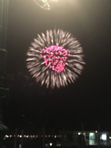 La sera del sabato alle 23.30 tutti con il naso all’insù rapiti dal meraviglioso spettacolo pirotecnico che dura più di 30 minuti. Quest’anno le forme, i colori, i giochi di luci variopinte, sono stati veramente strabilianti e gli spettatori attoniti manifestavano la propria ammirazione ad ogni effetto pirotecnico che si innalzava nel cielo luminoso.