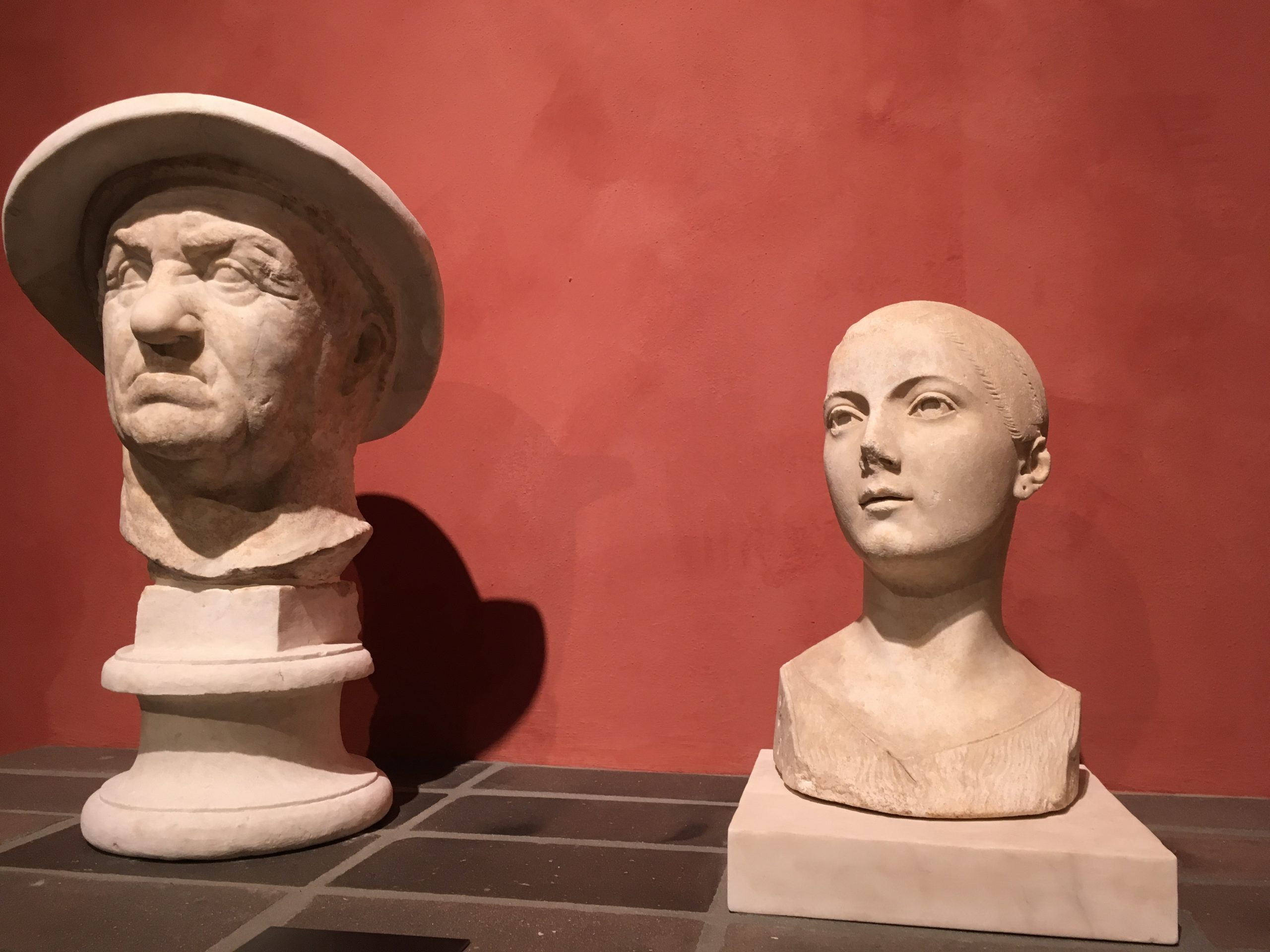 A sx. ritratto maschile detto di Eutidemo di Battriana, fine III-inizi II sec. a.C A dx. Ritratto di fanciulla da Vulci circa 50-40 a.C