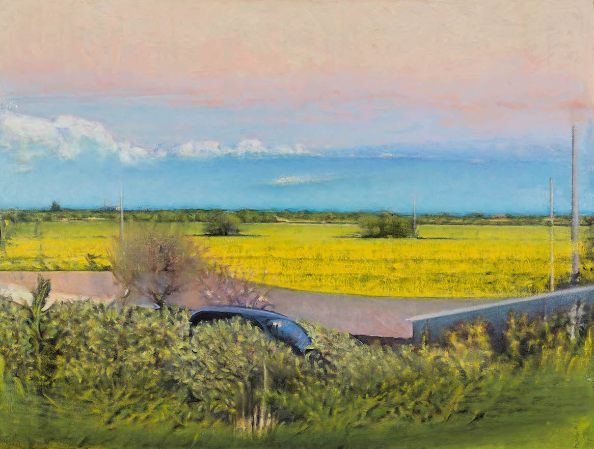 E’ l’artista, che ha riletto la grande tradizione della pittura di paesaggio, gli impressionisti Bonnard Cézanne, per citarne alcuni, fa parte di coloro che credono nell’arte. Quella che non ha mai rinnegato la cadenza artigianale del dipingere. “La pittura è qualcosa che si fa con le mani, oltre che con la testa e col cuore” sostiene. Quella che rimane fedele alla propria vocazione. Anche a costo di essere giudicata desueta. Vocazione che si alimenta, si nutre, si esprime reinventando il paesaggio che gli appartiene. Paesaggio ora solare ora serale immerso nella sicilianità in cui vive. Filtrato da un occhio che sa cosa vedere, per andare oltre il valico della mera riproduzione visiva.