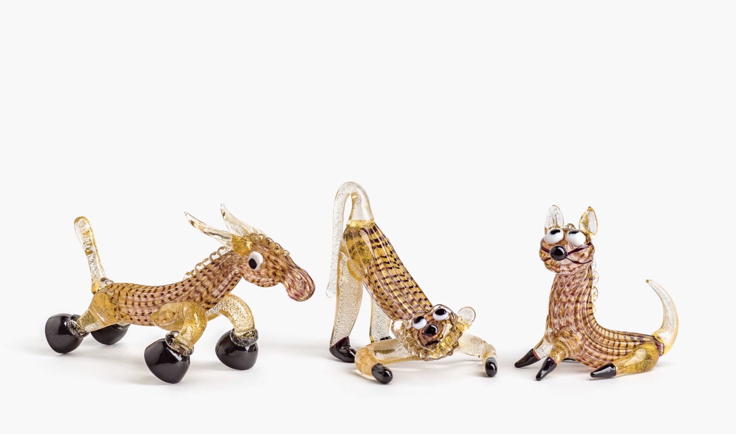 Il collezionare animali in vetro ha permesso a Rosenberg di frequentare le vetrerie di Murano e i maestri vetrai che secondo lui sono veri artisti che mostrano di possedere un grande spirito di osservazione rappresentando gli animali in modo curioso e non convenzionale. I migliori artisti del vetro sono tutti in mostra: Napoleone Martinuzzi con i suoi Pelugosi (tecnica in cui il vetro si presenta pieno di bollicine ottenute introducendo nella massa fusa una sostanza per produrre lo sviluppo di bolle di gas. La tecnica venne sviluppata da Martinuzzi stesso per la Venini),Tyra Lundgren e Toni Zuccheri con I Volatili, Bruno Amadi con i suoi Insetti a lume di vetro (tecnica nella quale si utilizza la fiamma di un cannello metallico per fondere il vetro formato in bacchette. All’inizio la fiamma era prodotta da un lume, da cui deriva la denominazione), Barovier & Toso con gli Zebrati e Alfredo Barbini con i suoi Acquari.