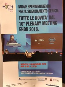 Sabato 15 dicembre l’Associazione AICH di Roma, di cui è Vicepresidente la Dott.ssa Wanda Danzi, ha organizzato un interessante incontro scientifico di aggiornamento e condivisione sulla Malattia “Còrea di Huntington” e sul silenziamento genico..